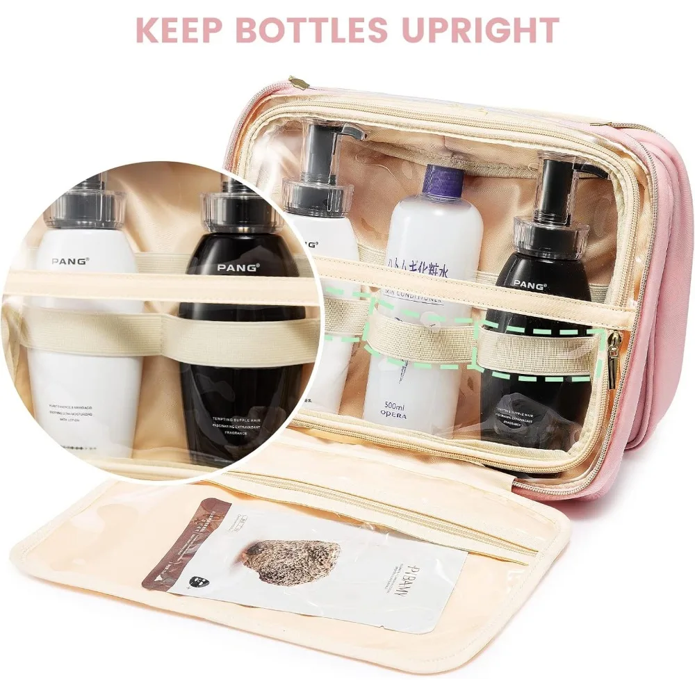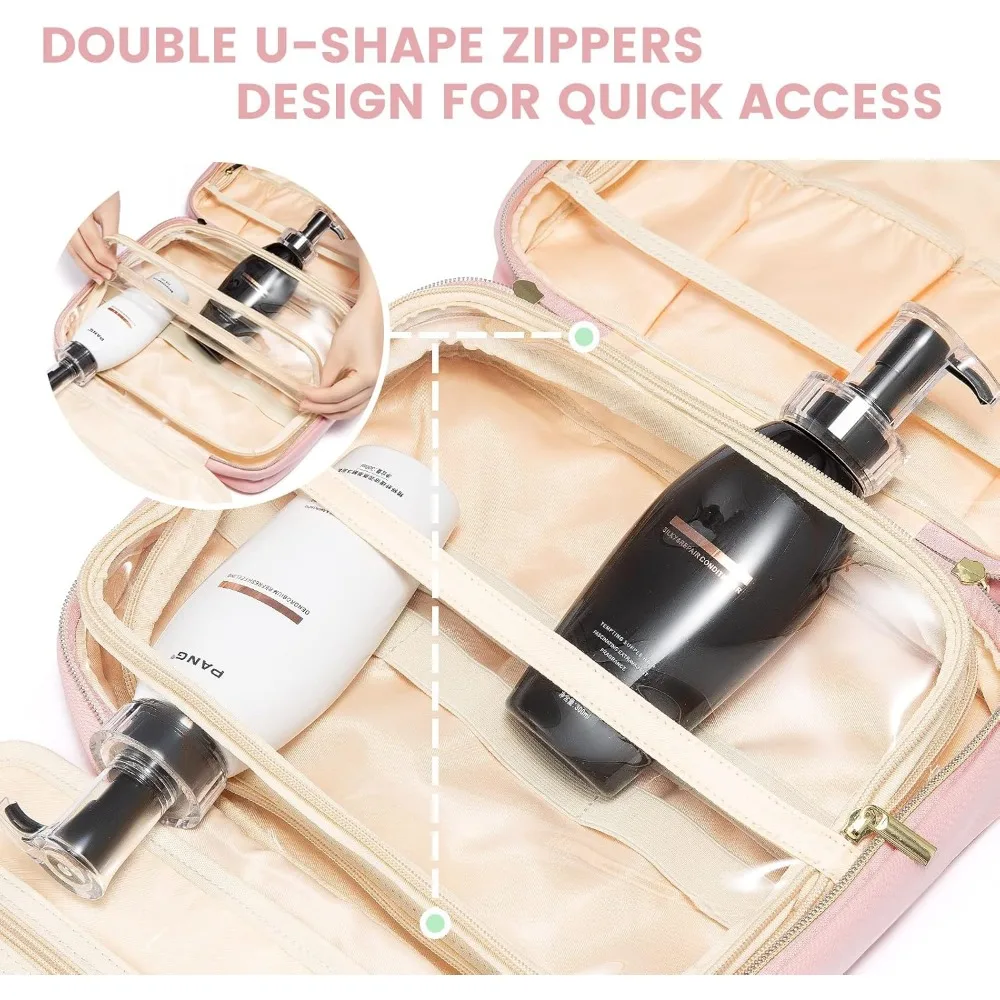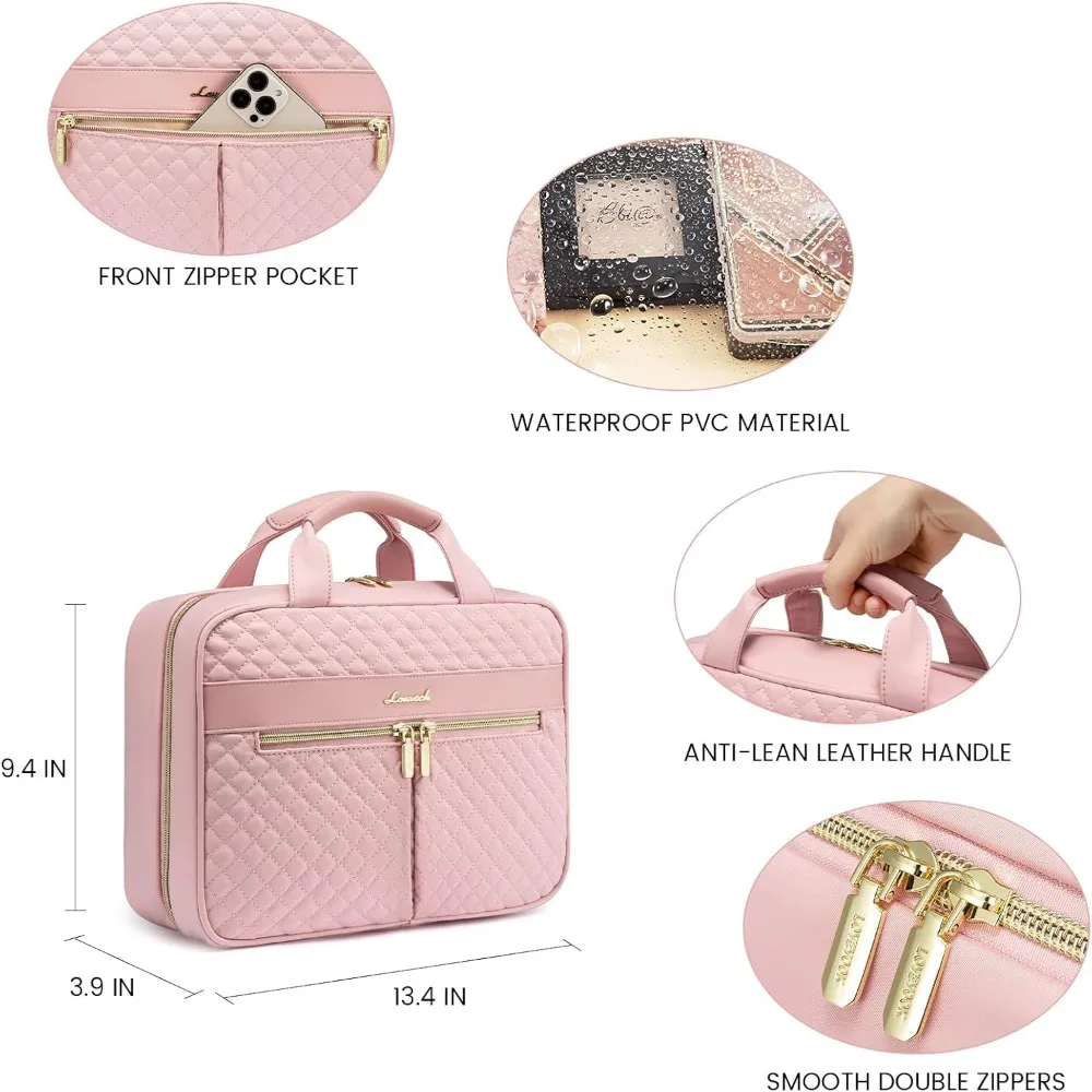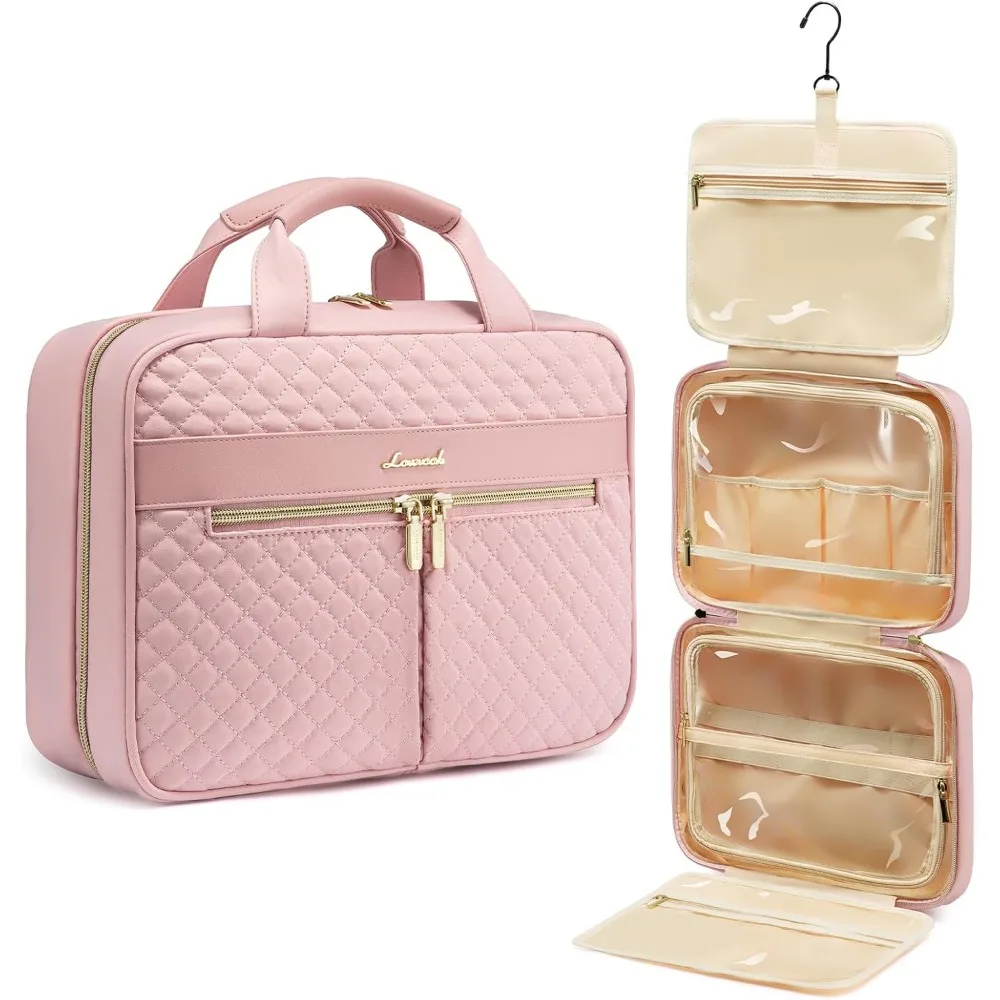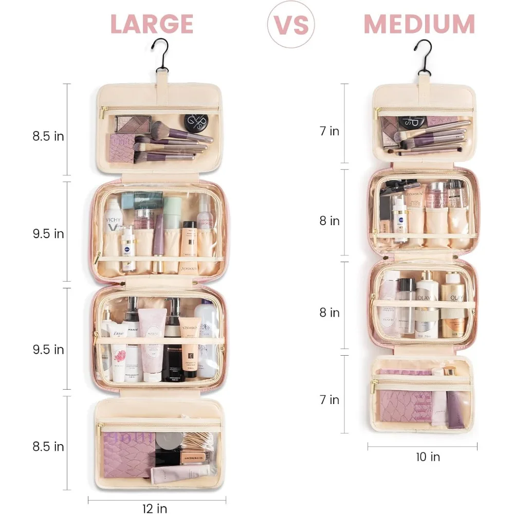 The LOVEVOOK Travel Cosmetic Bag is designed for women who want full-sized storage in a compact, travel-ready design. With dimensions of 13.4"×9.4"×3.9" (closed) and 36"×13.4" (unfolded), it features four separate compartments, a zippered front pocket, and elastic straps to hold bottles upright, keeping all your toiletries, makeup, and daily essentials neatly organized.Key Features: